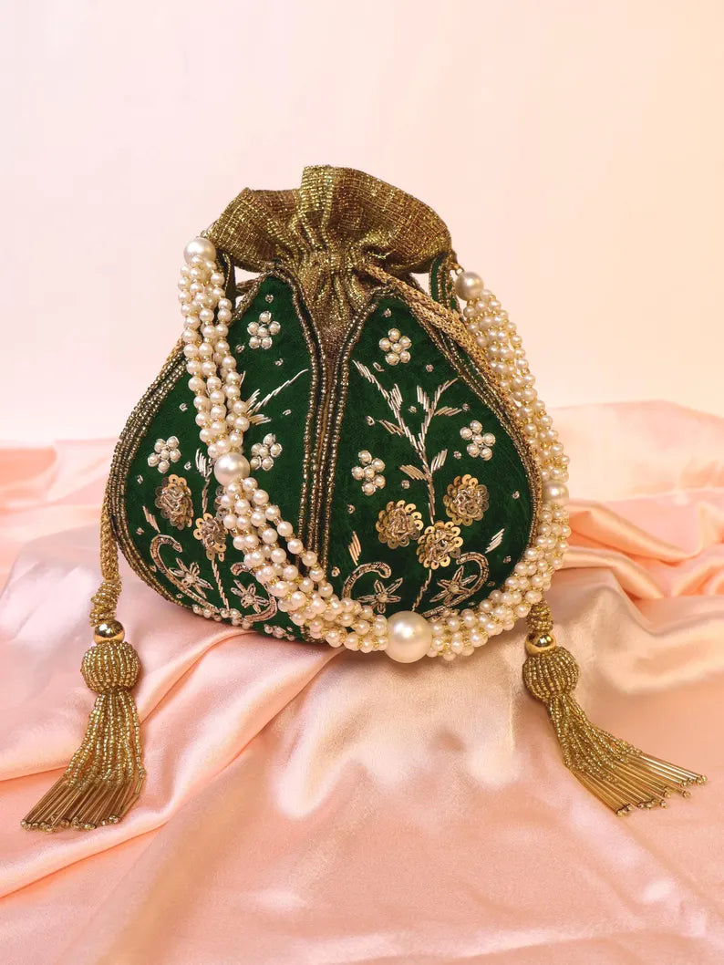 Step into timeless tradition with the AMASHA Potli Bag, handcrafted from fine cloth and decorated with delicate embellishments. Every detail reflects heritage artistry, making it the perfect match for lehengas, sarees, and festive ensembles. Light to carry and rich in cultural appeal, this potli is a beautiful blend of style and craftsmanship.