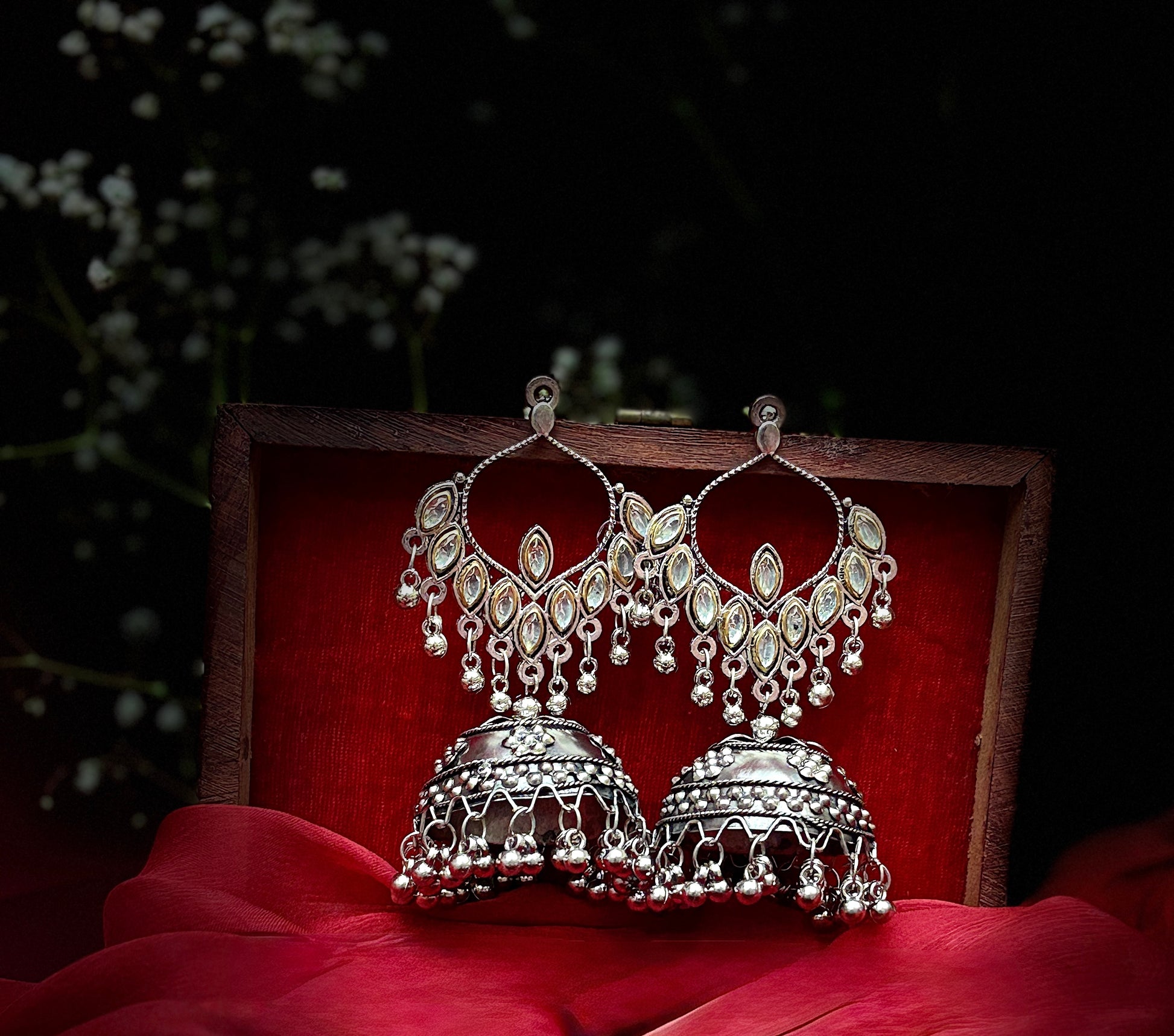 Step into effortless elegance with our Zuri Oxidised Jhumkas, a perfect blend of tradition and modern charm. Designed with intricate detailing and a rustic silver finish, these jhumkas bring out the beauty of handcrafted artistry. Lightweight yet striking, they complement both ethnic and fusion looks with ease.